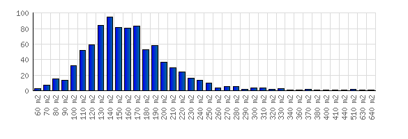 Viborg og omegn, der er 888 villaer til salg. Villaernes størelse fordeler sig som vist på grafiken. Se alle villaerne her.